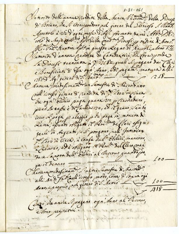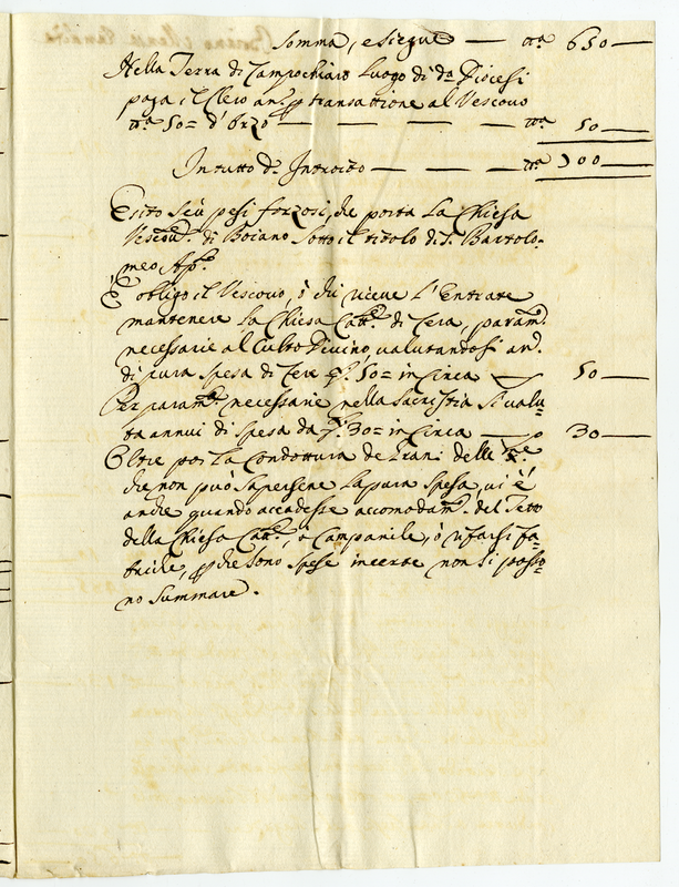 Esito sui pesi forzosi che porta la chiesa Vescovale di Boiano (1700-1721)