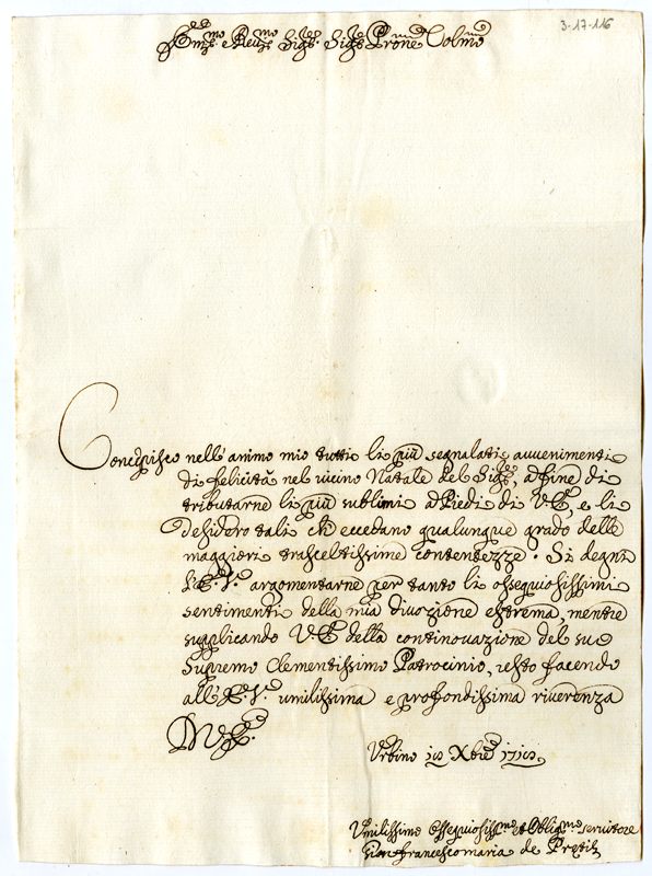Lettera di Gianfrancesco Maria de Pretis al cardinale Annibale Albani (1718 dicembre 18)