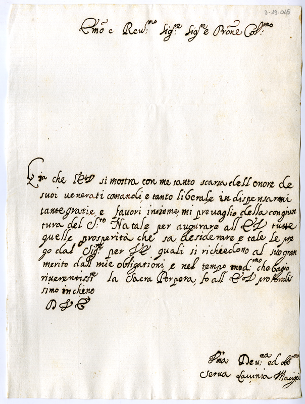 Lettera di Lavinia Macigni ad Annibale Albani (1719 dicembre)