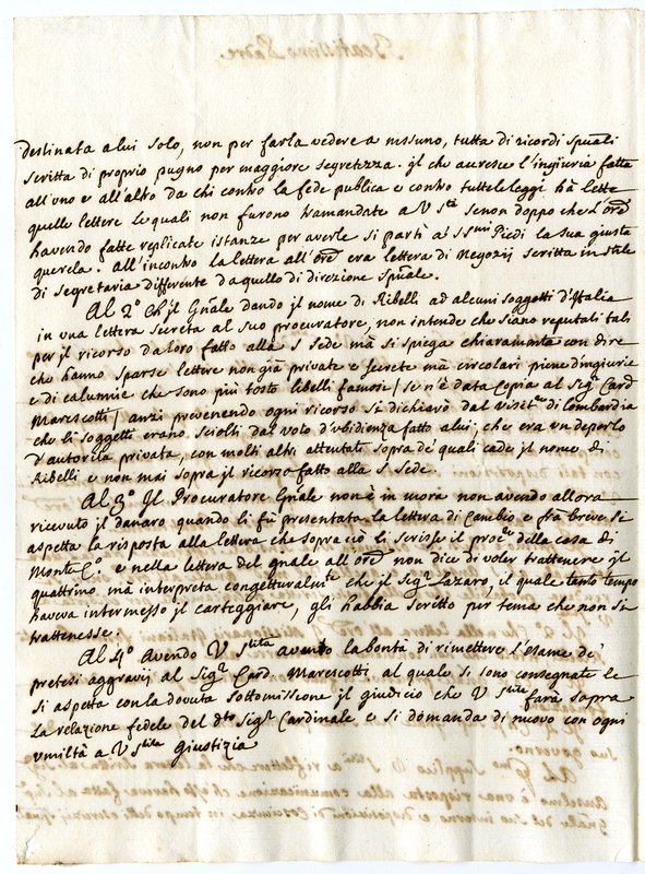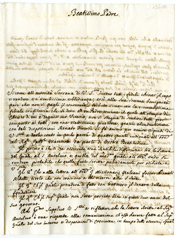 Lettera di Renato Diversi a Clemente XI (1700-1721)