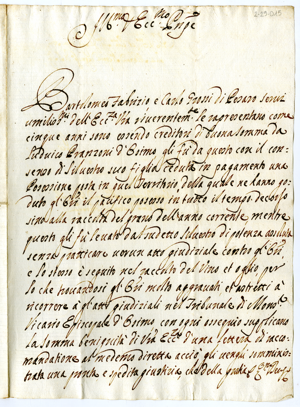 Lettera di Bartolomeo, Fabrizio e Carlo Grossi ad Annibale Albani 1700-1721)