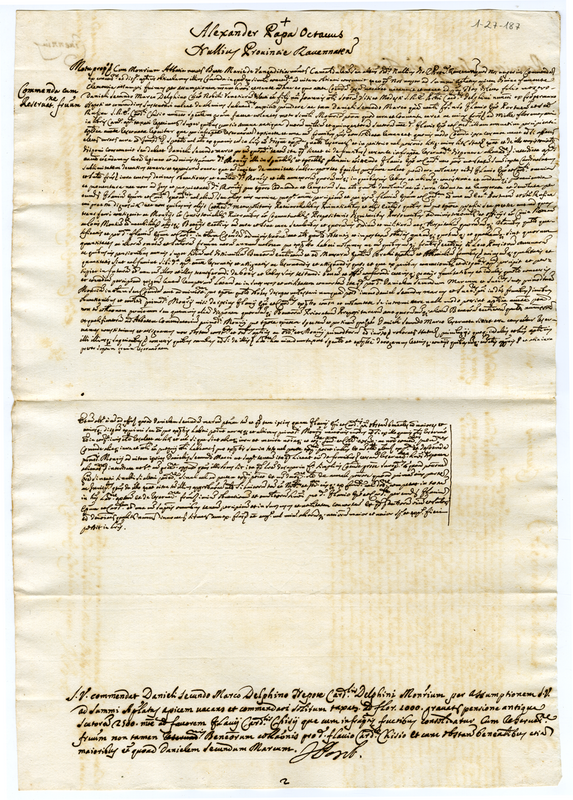 Motu proprio di Alessandro Papa Ottavo (1689-1691