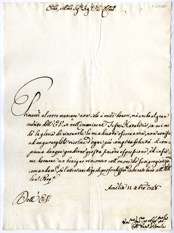 Lettera di Giovanni Battista vescovo di Amelia al cardinale Annibale Albani (1728 dicembre 11)