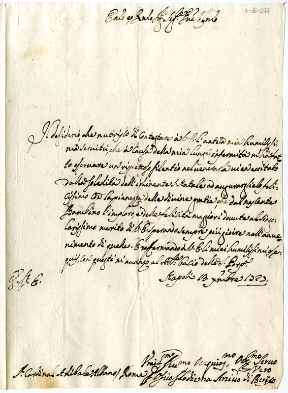Lettera di Onofrio Francesco Odierna al cardinale Annibale Albani (1727 dicembre 13)