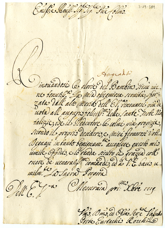 Lettera di Eustachio Rocchi ad Annibale Albani (1719 dicembre 1)