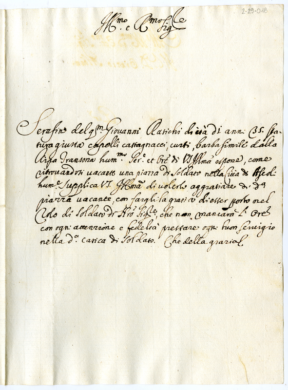 Chiede pa piazza vacante di soldato nella città di Ascoli Piceno
