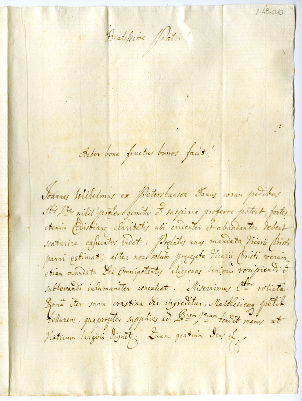 Lettera di Giovanni Guglielmo da Petershausen Dano a papa Clemente XI (1700-1721)