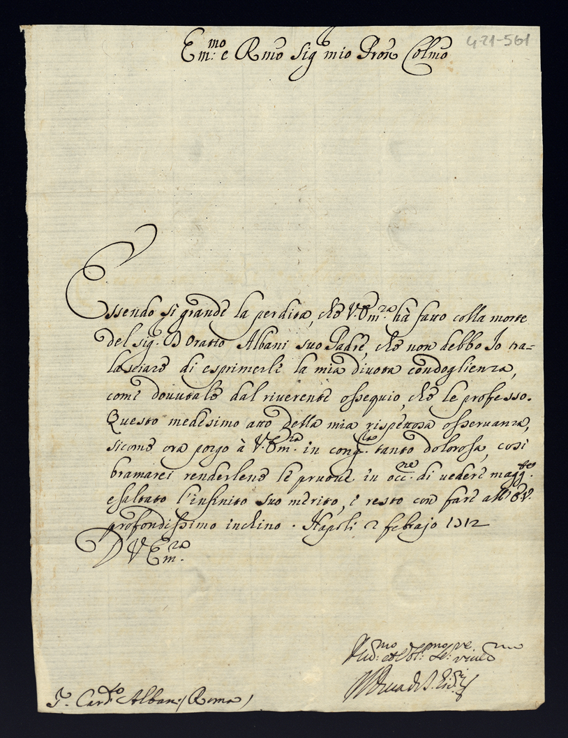 Lettere di condoglianza per la morte dell'eccellentissimo signor principe don Orazio Albani