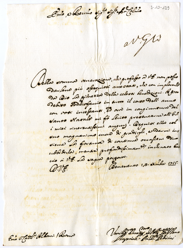 Lettera di Imperiale Pedicini al cardinale Annibale Albani (1715 dicembre 14)