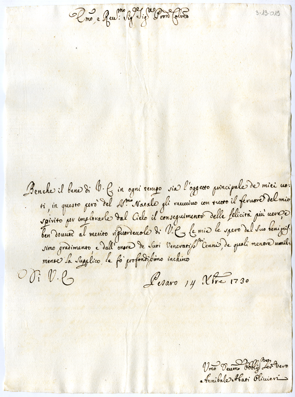 Lettera di Annibale Abati Olivieri al cardinale Annibale Albani (1730 dicembre 14)