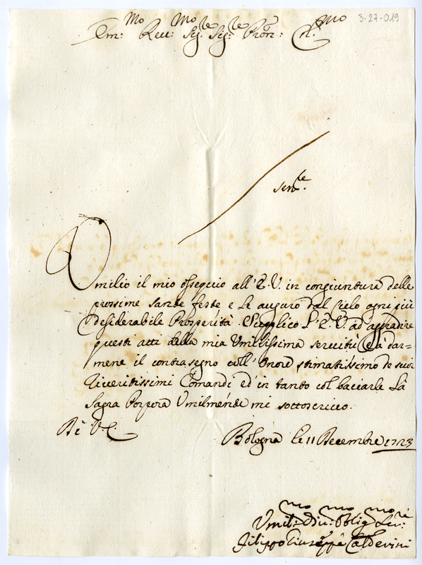 Lettera di Filippo Giuseppe Calderini al cardinale Annibale Albani (1723 dicembre 11)