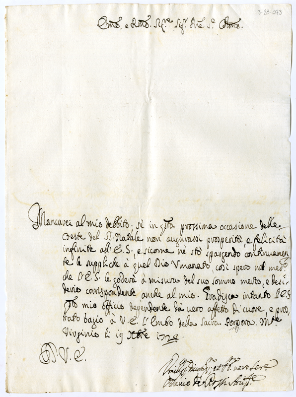 Lettera di Flavio de' Rossi al cardinale Annibale Albani (1724 dicembre 19)