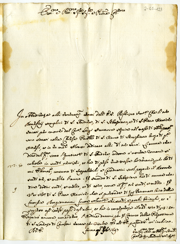 Lettera di Diego Balducci, vicario generale, a un cardinale (1697 febbraio 1)