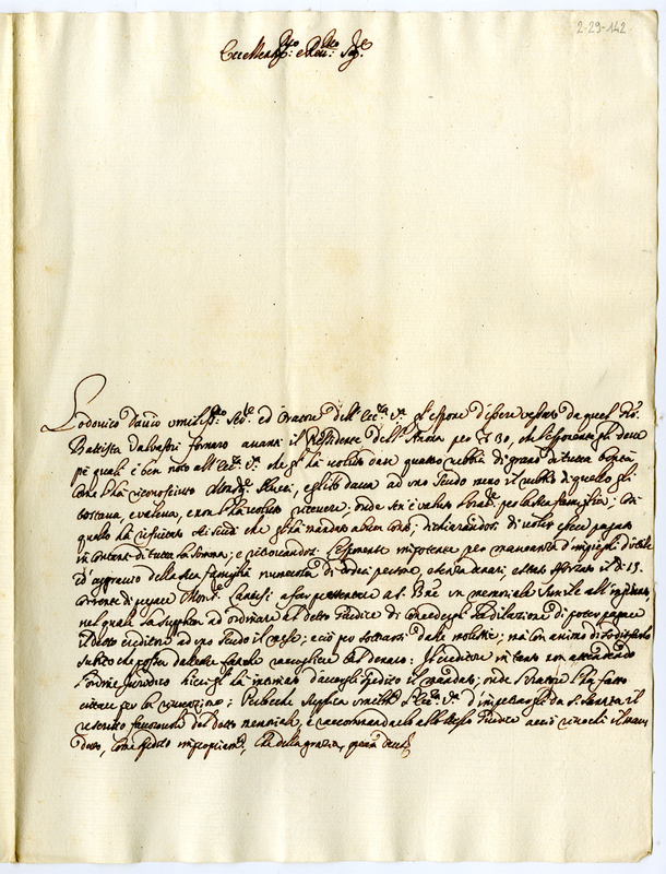 Dovendo pagare a Giovanni Battista Valvassori 30 scudi di debito, chiede all'Albani di interessarsi per poter avere una dilazione del pagamento ad uno scudo il mese