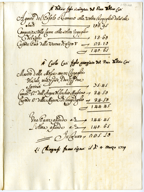 Attribuzione distinta a Federico Cesi e a Carlo Cesi di alcuni uffici vacabili di Campidoglio (1719)