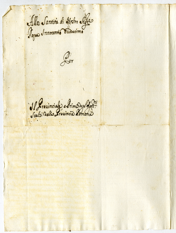 Lettera del provinciale e priore degli Agostiniani Scalzi a papa Innocenzo XII (1691-1700)