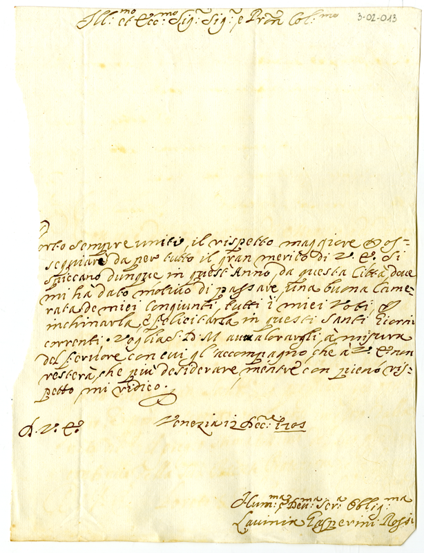Lettera di Lavinia Gasperini Rossi ad Annibale Albani (1705 dicembre 12)