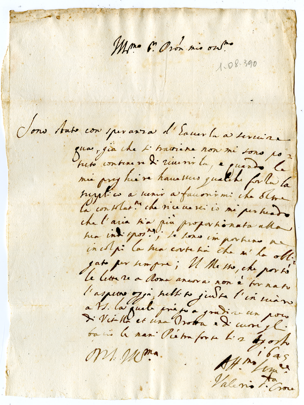 Lettera di Valerio Santa Croce a Malatesta Albani (1645 agosto 2)