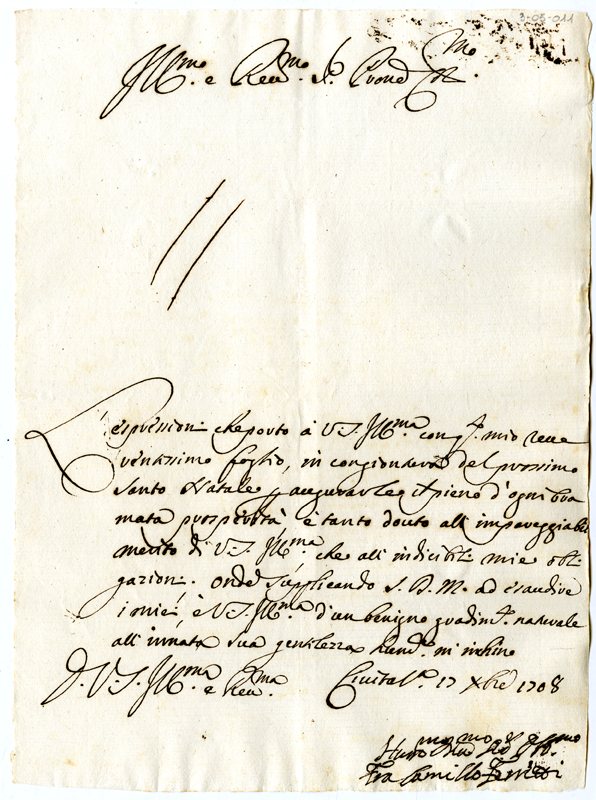 Lettera di fra Camillo Ferretti ad Annibale Albani (1708 dicembre 17)