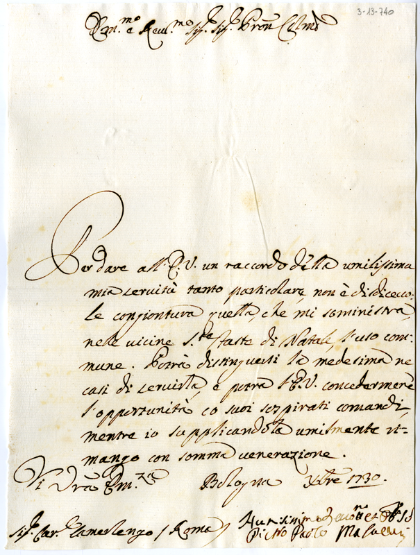 Lettera di Pietro Paolo Malvezzi al cardinale Annibale Albani (1730 dicembre)