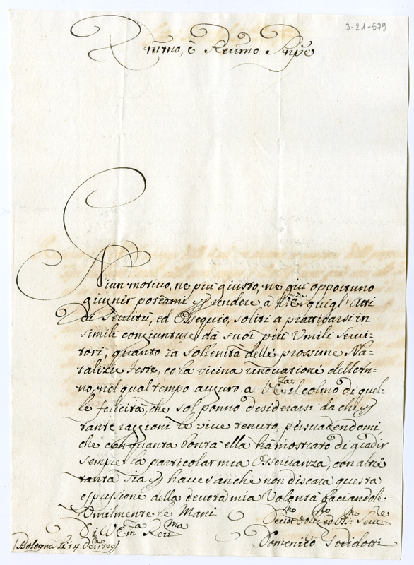 Lettera di Domenico Guidotti al cardinale Annibale Albani (1729 dicembre 14)