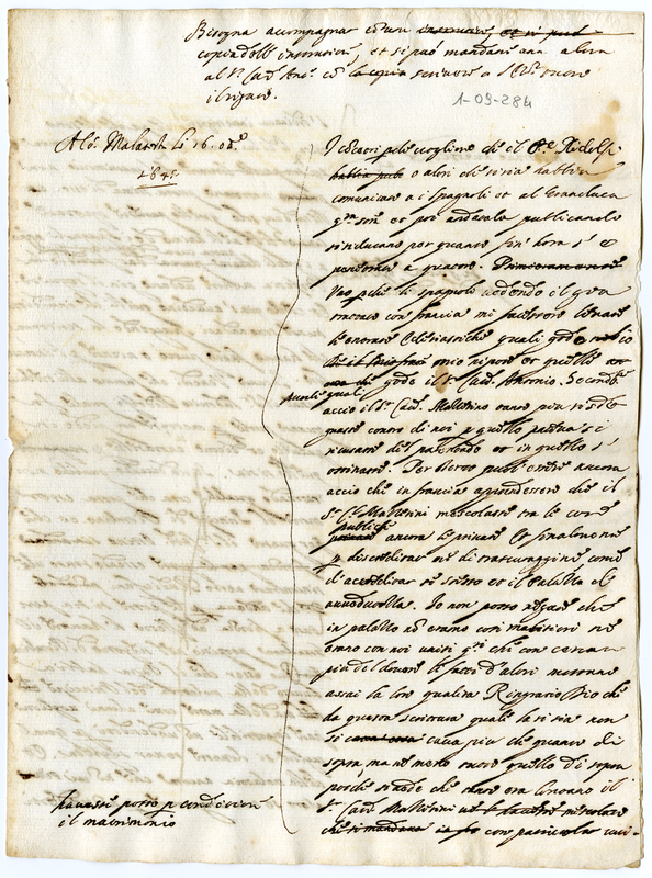 Minuta di lettera scritta a Malatesta Albani (1645 ottobre 16)