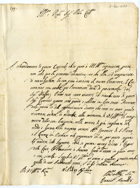 Lettera di Ottavio Antaldi a Illustrissimo e Reverendissimo Signore (1684 agosto 25)