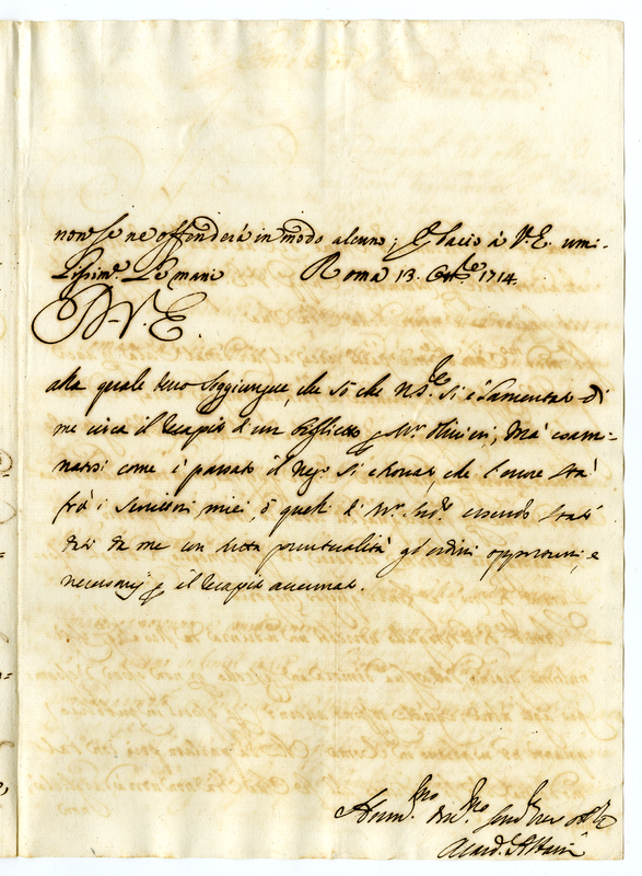 Lettera del cardinale Albani ad un cardinale (1714 ottobre 13)