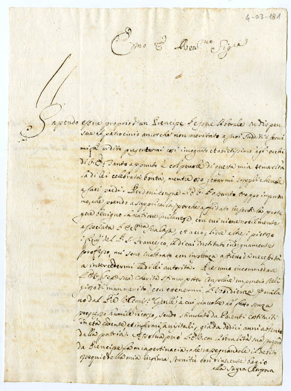 Lettera di fra Illuminato di Milano al Cardinale Annibale Albani (1716 marzo 8)