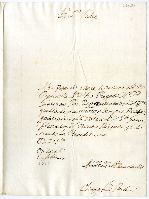 Lettera di Olimpia Giustiniani Barberini a papa Clemente XI (1711 febbraio 12)