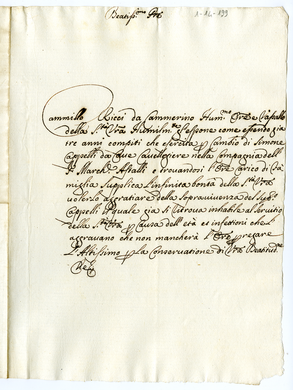 Supplica di Camillo Ricci a Clemente XI