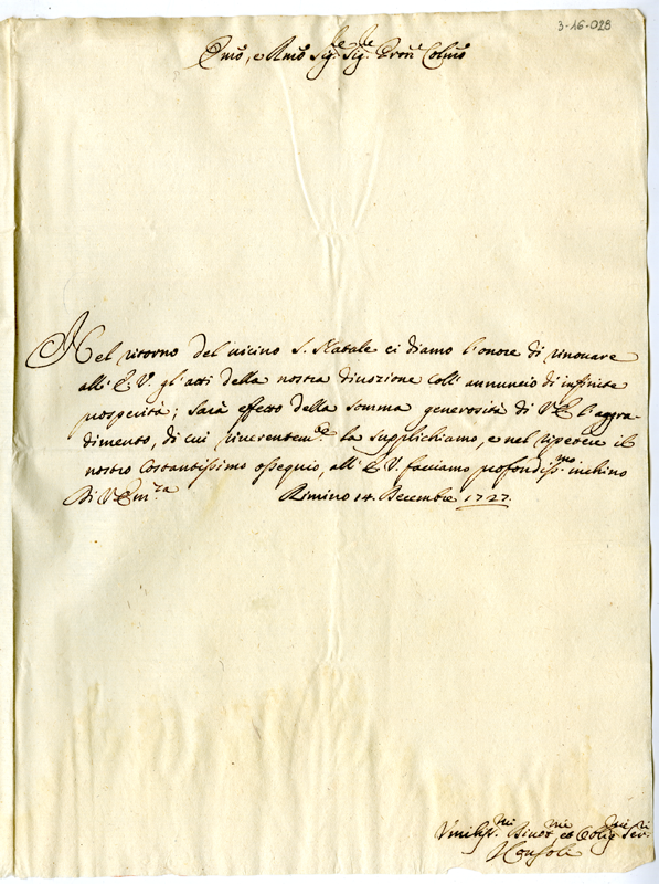 Lettera dei consoli della città di Rimini al cardinale Annibale Albani (1727 dicembre 14)