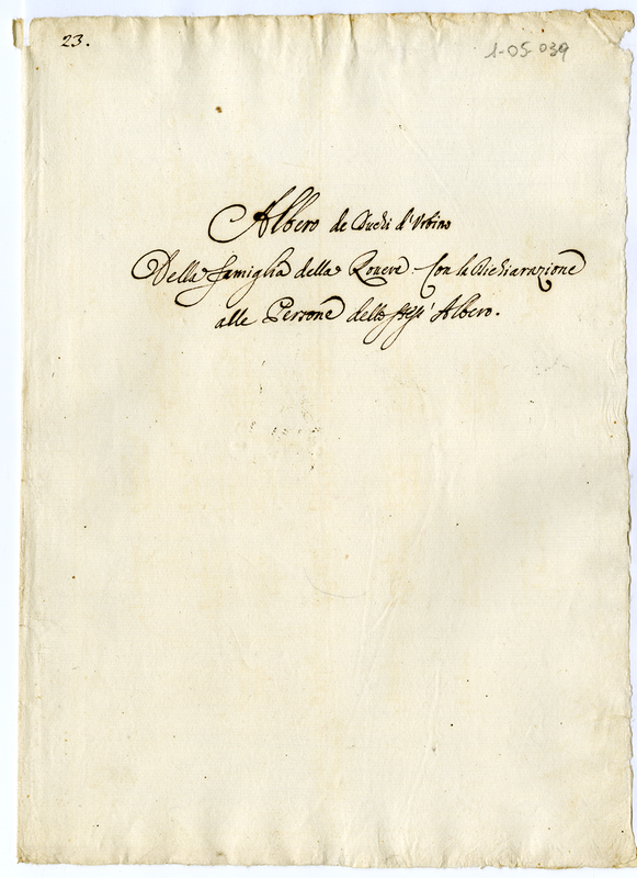 Albero dei duchi d'Urbino della famiglia Della Rovere. Con la dichiarazione alle persone dello stess'albero
