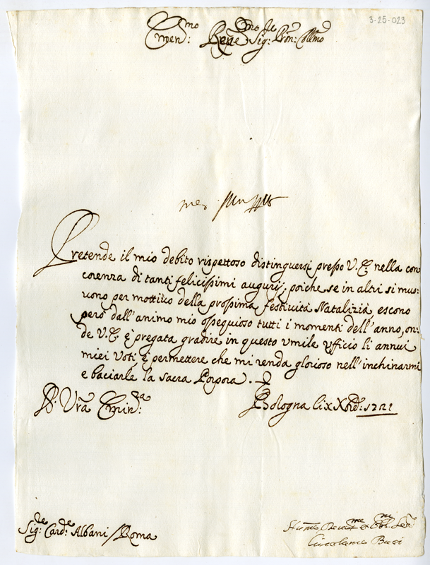 Lettera di Girolamo Buoi al cardinale Annibale Albani (1721 dicembre 10)