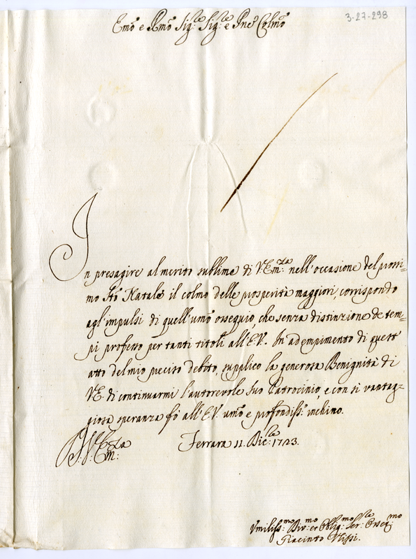 Lettera di Giacinto Ulissi al cardinale Annibale Albani (1723 dicembre 11)