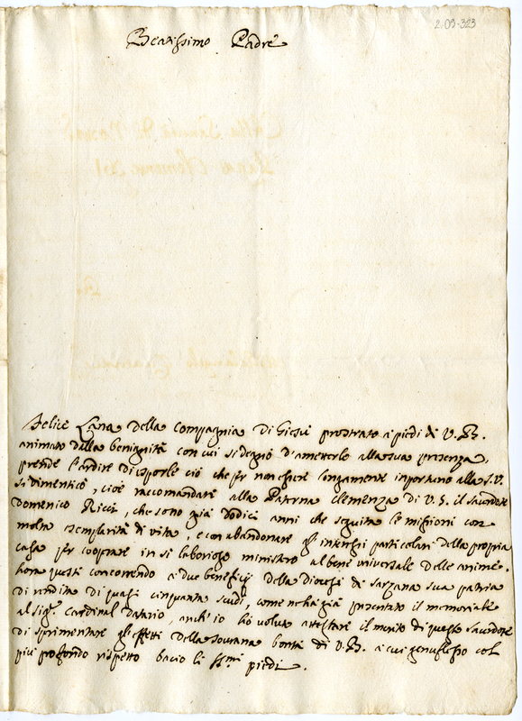 | dc.description | Raccomanda il sacerdote Domenido Ricci missionario per due benefici nella diocesi di Sarzana | |