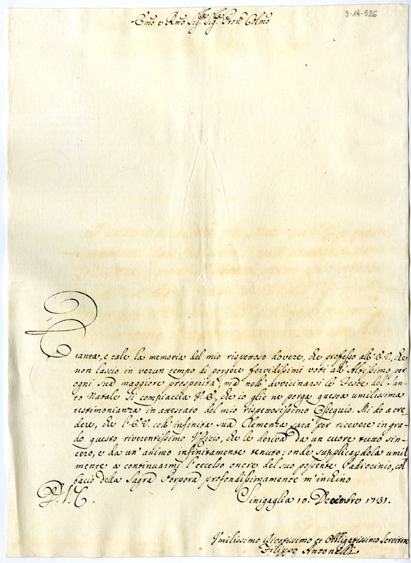 Lettera di Filippo Antonelli al cardinale Annibale Albani (1731 dicembre 10)