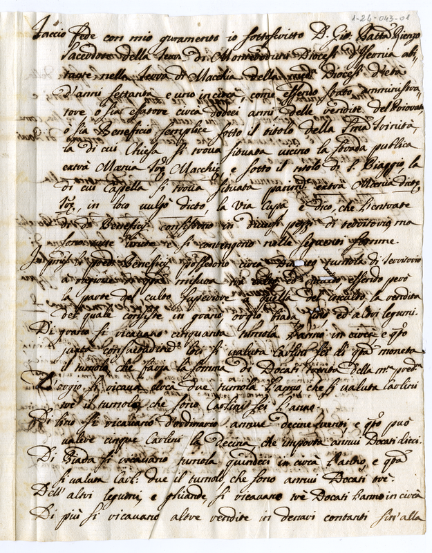 Descrizione fatta da don Giovanni Battista Rienzo delle rendite dei benefici semplici sotto i titoli della Santissima Trinità e di San Biagio (1690)