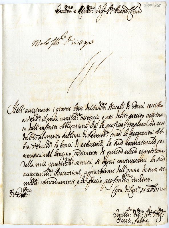 Lettera di Orazio Fabbri al cardinale Annibale Albani (1712 dicembre 15)