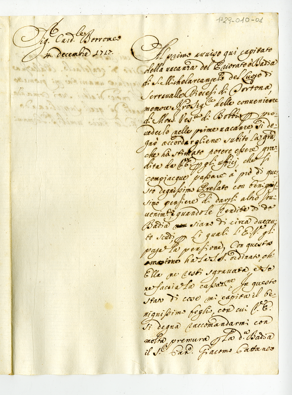 Lettera del cardinale Borromeo (1717 dicembre 4)