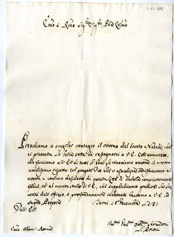 Lettera dei priori di Terni al cardinale Annibale Albani (1731 dicembre 16)