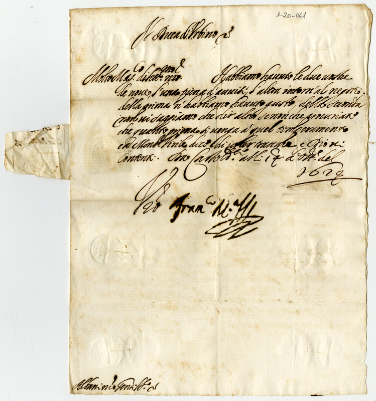 Lettera di Francesco Maria duca di Urbino a Orazio Albani (1624 ottobre 14)