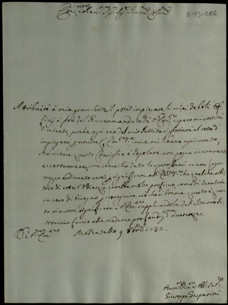 Lettere al cardinale S. Clemente dell'anno 1732