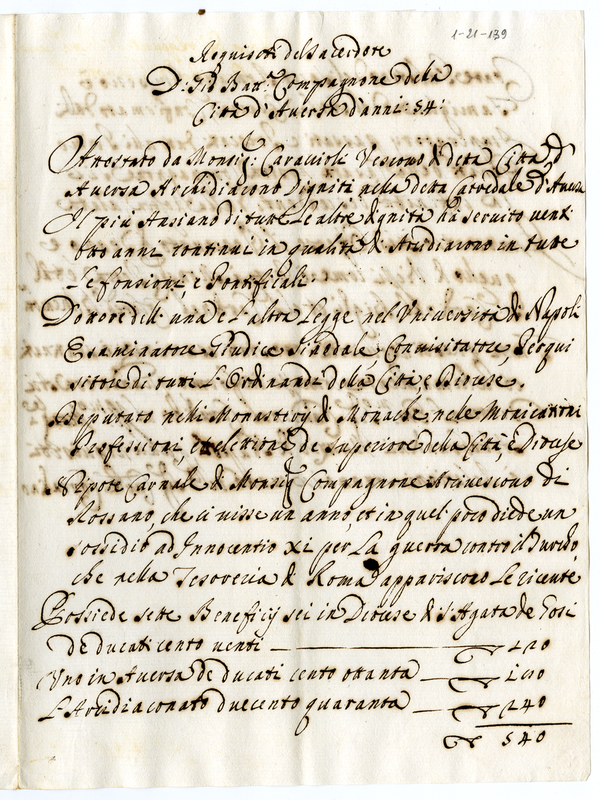 Requisiti del sacerdote don Giovanni Battista Compagnone della città di Aversa (1700-1721)