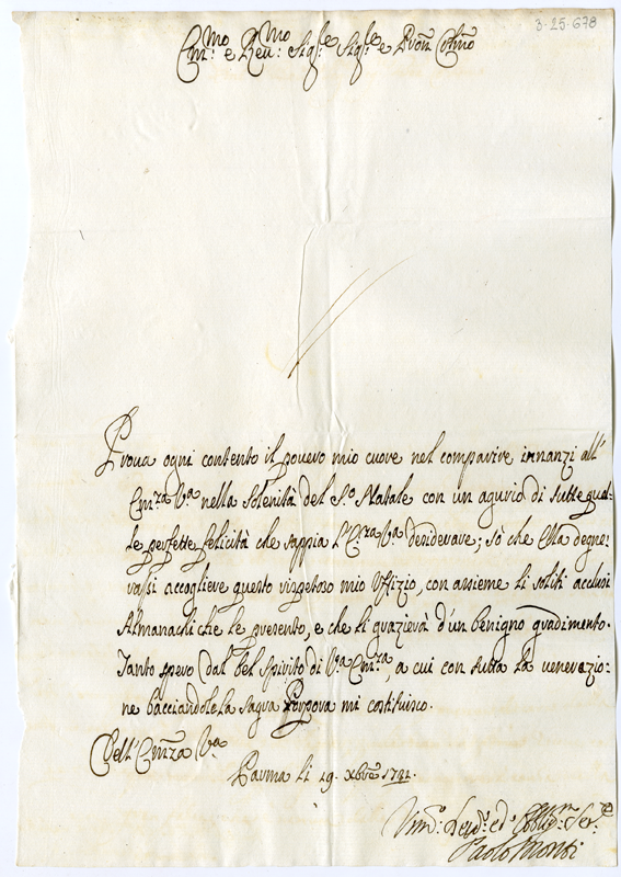 Lettera di Paolo Monti al cardinale Annibale Albani (1721 dicembre 19)