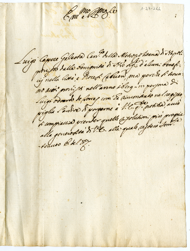 Lettera di Luigi Capece Galeota al Cardinale Prodatario (1600-1700)