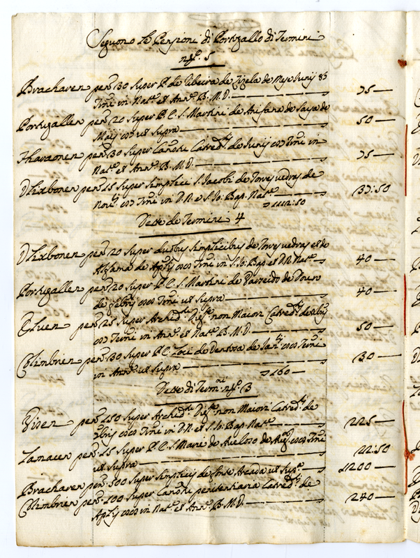 Copia. Pensioni di Portogallo delle quali a' tutto l'Anno Scorso 1689 sono Maturati diversi Termini Cioè