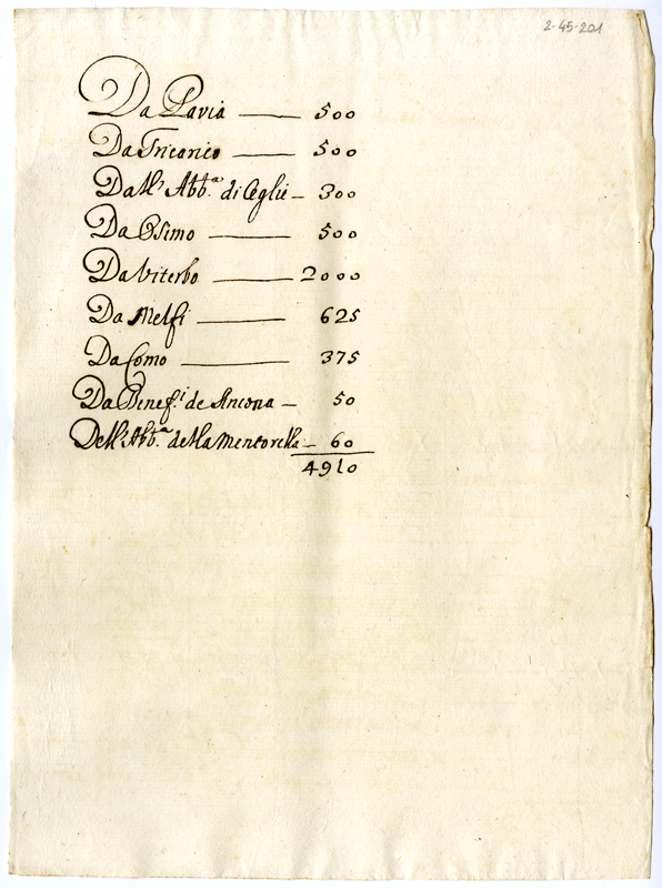 Ricavi di benefici di varie località (1700-1721)