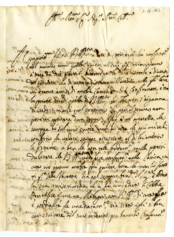 Lettera di Giulia Albani Olivieri degli Abbati a Giovanni Francesco Albani (1689 ottobre13)