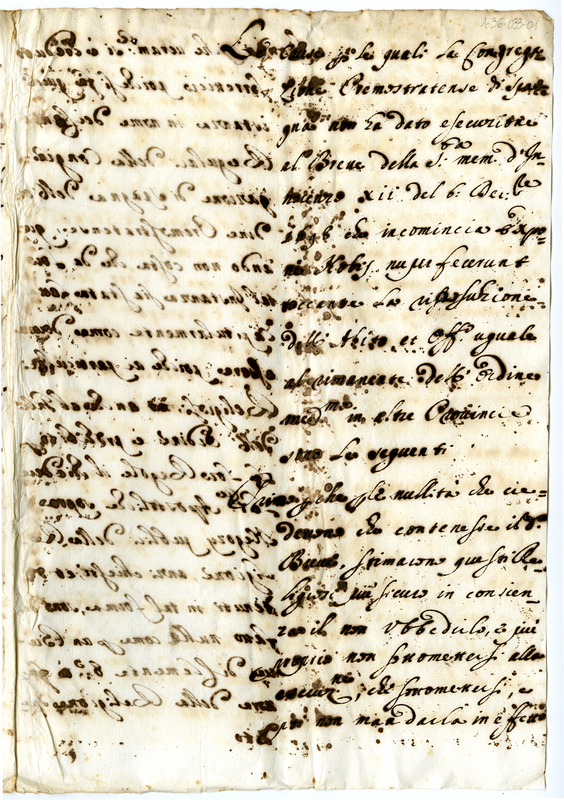 Motivi per i quali non fu accettato l'ordine di Monsignor Nunzio Acquaviva ai Canonici Premonstratensi di Spagna a pigliare l'abito del loro ordine a teneore del breve della Santa Memoria di Innocenzo XII (1700-1721)